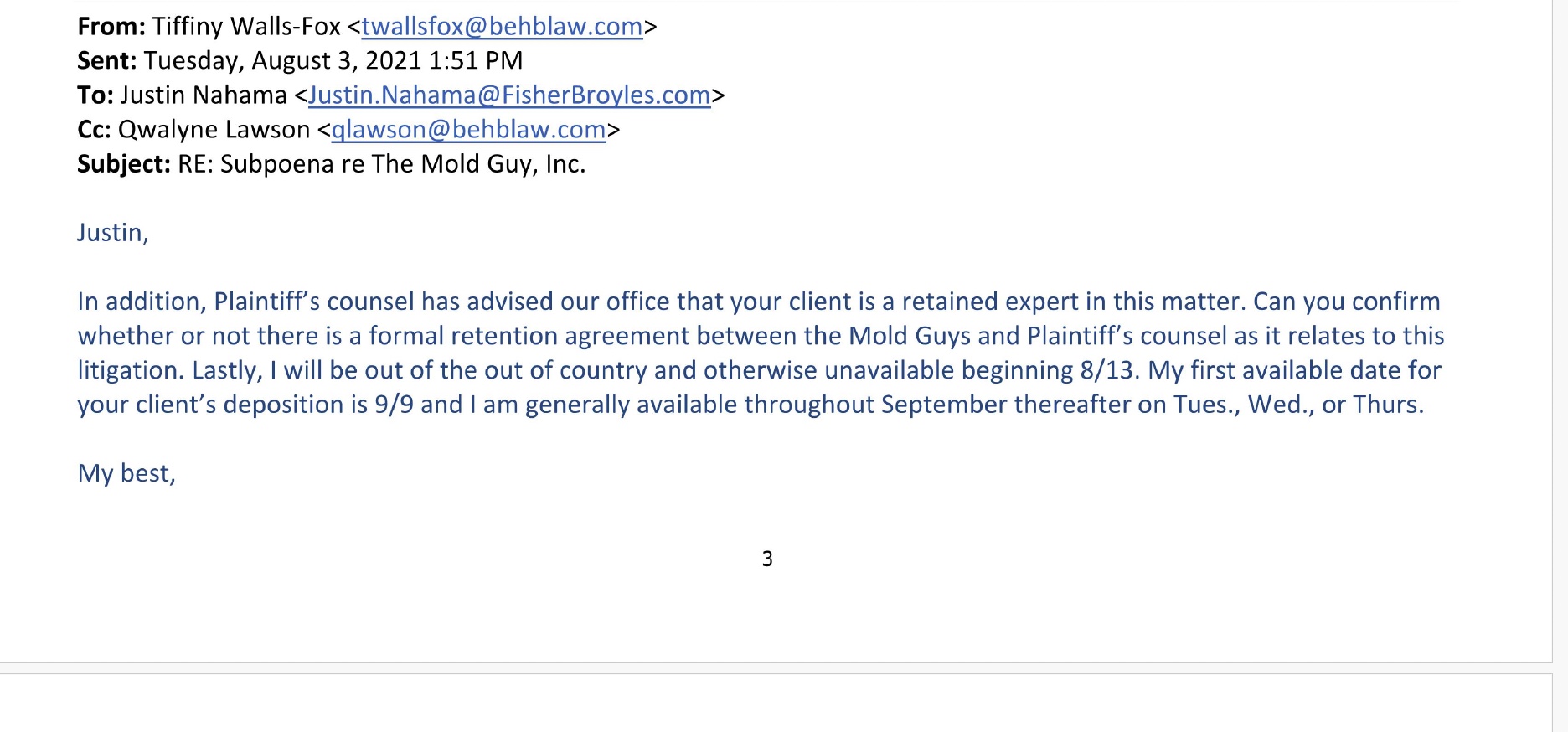 Justin Nahama, Esq., an attorney and strategic advisor to Change the Air13 seems a bit of an outsider - it does not seem handles environmental toxic tort issues, real estate issues, personal injury issues, or anything of the sort per his biography on Change the Air’s website nor his biography on the website where he is a founding partner and “Chief Wellbeing Officer”.14. But he is apparently friends with Deepak Chopra. The biography on his firm website highlights “According to Deepak Chopra, ‘There is chaos and turbulence in the world, but all great changes are preceded by chaos . . . with Justin's help, we will focus on the quantum leap to creativity for health, joy, love, harmony and laughter.’” Nahama’s biography also states he is the “Chief Impact Advisor” to Deepak Chopra. Although I’m east-coast based, this is the oddest most clout-toting biography with irrelevant information - in my opinion. I hire my lawyers based on their expertise, talent, skill, and experience, not whether or not they bring joy to the world. However, I will be the first person to say that many people probably think I am odd - I’m from the “Oregon Trail Generation”, probably the last generation to remember Gwyneth Paltrow even acted - and I like Hello Kitty, joke that I’m OCD (Obsessed with Cute Dogs), research PubMed and make memes for fun, and love reality trash TV - especially 90 Day Fiance. I’m also a rising Aries though, so cut me a break - please - my moon sign is Cancer so I’m sensitive AF. And most people IRL who meet me don’t even believe I’m a lawyer “because [I’m] too nice” and my sense of humor15. One thing that stands out about Nahama is despite Change the Air’s assertions they are not affiliated with the businesses, I obtained documentation that previously Nahama was private counsel to the The Mold Guy, which does make me question whether he is now serving as counsel to its predecessor, WeInspect - see below.