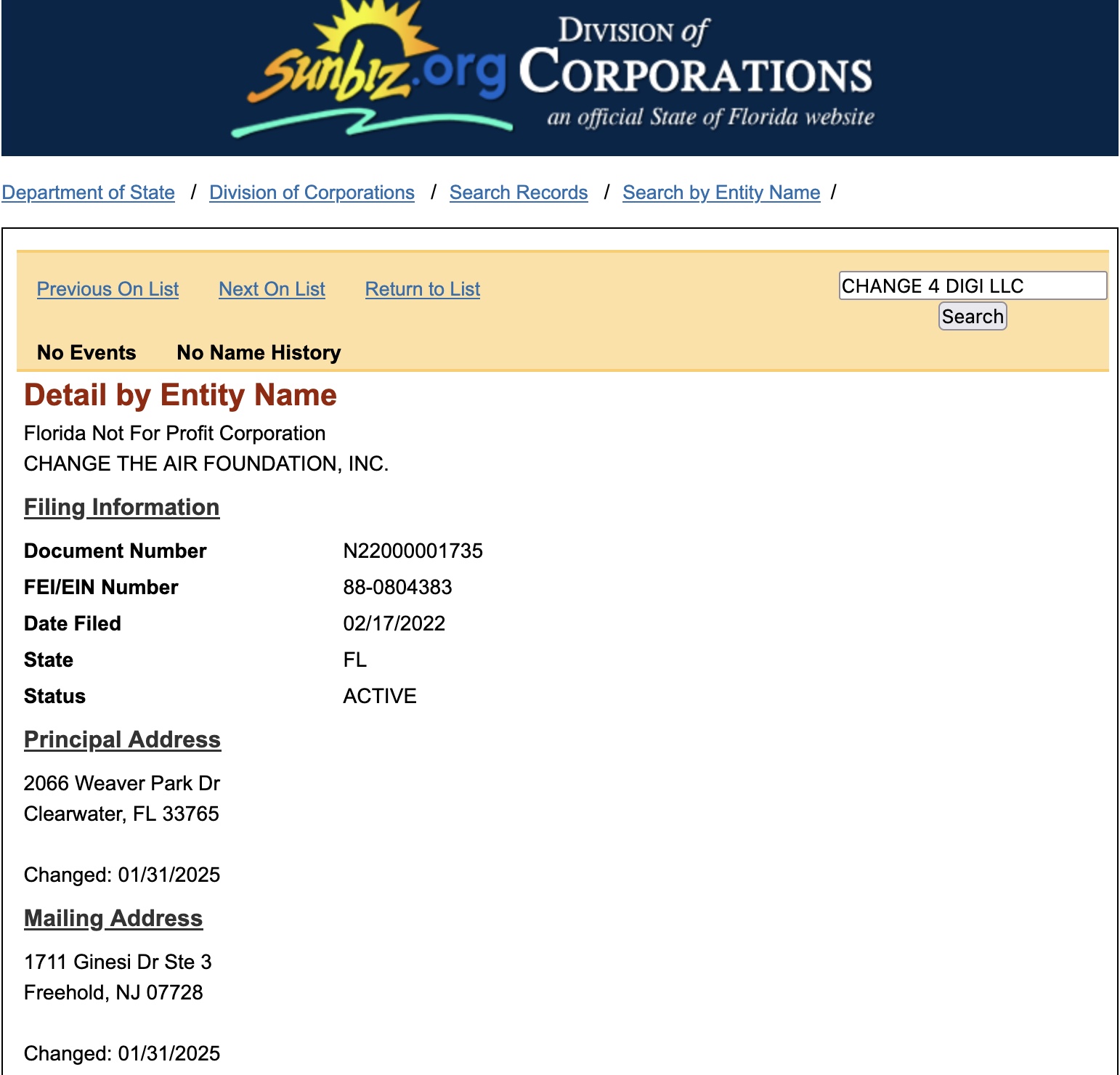 At the same time, a filing with the Florida Division of Corporations indicates a different suite number at the same address.